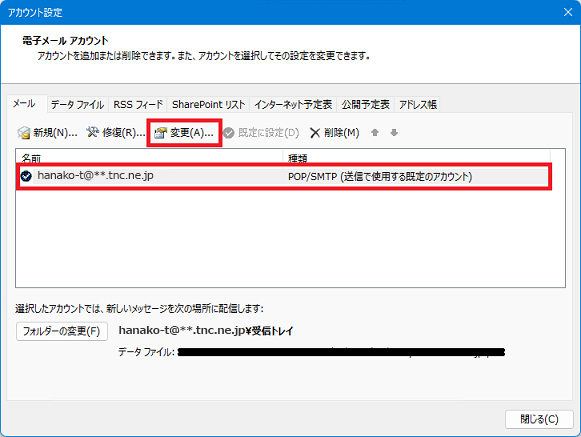 4. 設定を確認/変更したいメールアドレスを選択し、「変更」ボタンをクリックします。