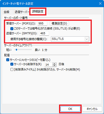7. 「詳細設定」タブをクリックし、設定が正しいか確認します。